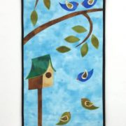 This wall hanging looks stunning in marbled or batik fabrics. The pattern contains six pages of written instructions, how-to images, templates and a full requirements list. This pattern is suitable for people that can use a sewing machine for straight and zigzag stitch, have the basics of machine quilting using a walking foot, the basics of rotary cutting and fusible web applique. However each part of the creative process is clearly shown in the pattern. The bird house could be personalised with a name or house number.